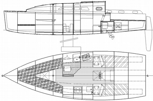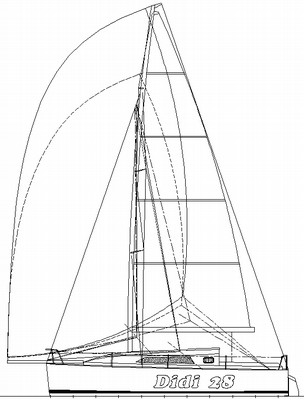 The Didi 28 is a direct development of the Didi 26, so it has many of the same features. It is in every way a big sister to the 26 but with more space built into it for comfort. This was achieved with a small increase in length and proportionately greater increases in beam and depth, as well as by raising the cabin structure to gain more headroom.